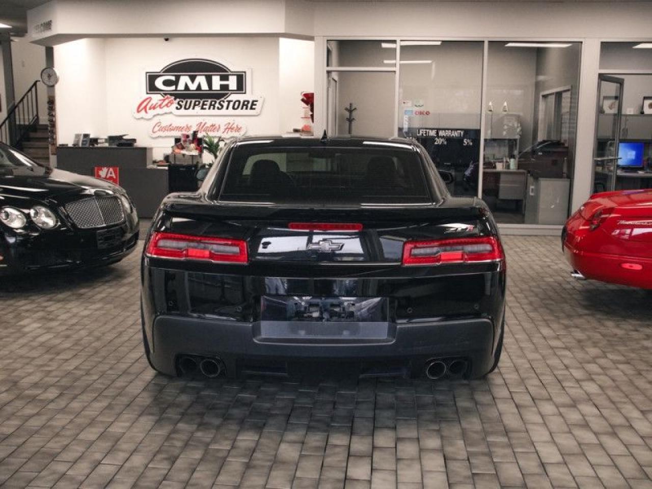 For tire-burning power and Hollywood looks, it doesn't get much better than the 2014 Chevrolet Camaro. For the 2014 Chevrolet Camaro, you'll instantly spot the car's sleeker front grille, new headlights and taillights, and minor changes all around. But the return of the Z/28 moniker adds a whole new level to Camaro performance this year.This coupe has 114,150 kms. It's black in colour and is major accident free based on the CARFAX Report . It has an automatic transmission and is powered by a 580HP 6.2L 8 Cylinder Engine.