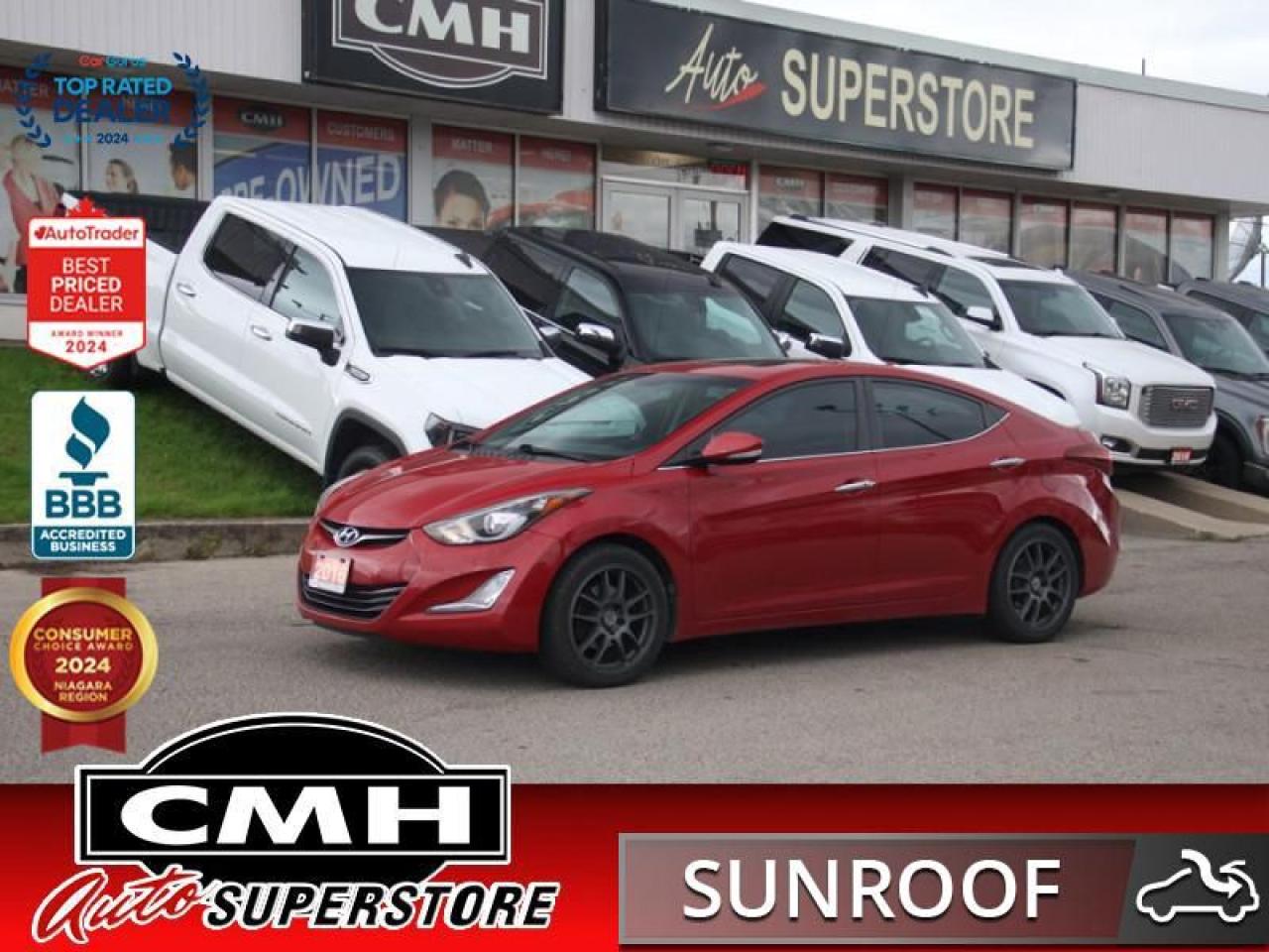 Elegance, fuel efficiency and safety are the three key things that best describe the 2016 Hyundai Elantra. The comfortable interior of the Elantra features higher-end soft-touch materials while the front seats are properly shaped for leisurely or aggressive driving styles. While the exterior offer properly placed curves and swooping line that combine elegantly with sweeping headlights and taillights making the Elantra look upscale without feeling gaudy or over the top. If you're in the market for a compact car that will delight both your sense of style and practicality, be sure to check out this 2016 Hyundai Elantra. This sedan has 179,970 kms. It's red in colour . It has an automatic transmission and is powered by a 173HP 2.0L 4 Cylinder Engine.