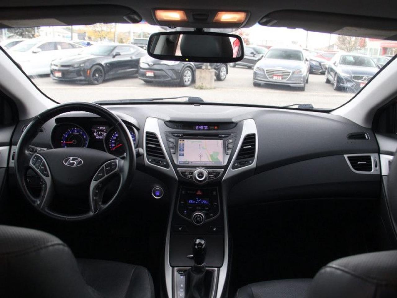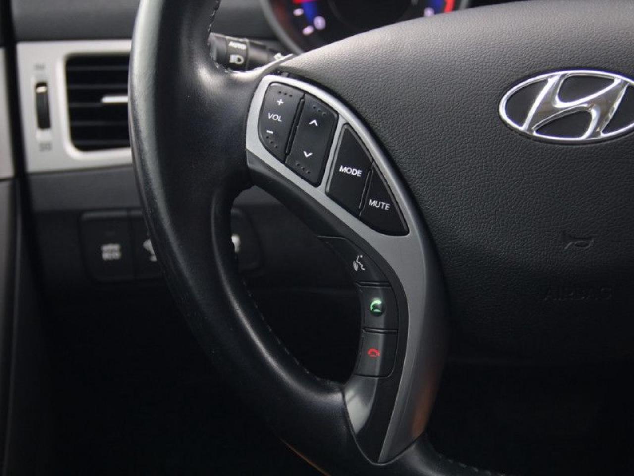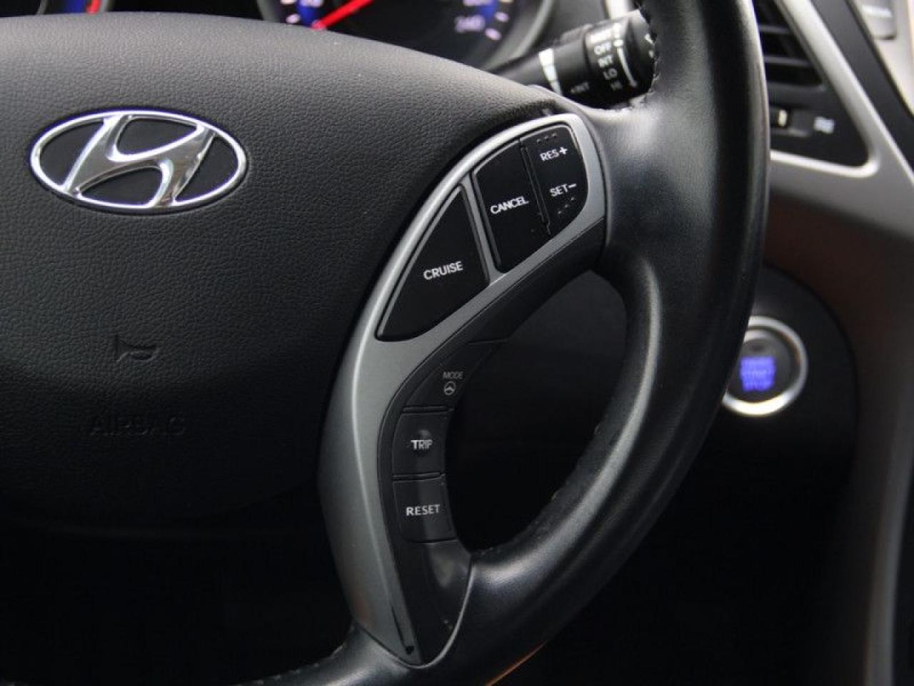 Our Elantra's trim level is Limited. This sedan is the top of the range Elantra Hyundai has to offer. It features premium options such as stylish aluminum wheels, power sunroof, leather seats front and rear, heated front bucket seats, dual zone automatic air conditioning, cruise control, power door locks with auto-lock, remote key-less entry, illuminated entry and plenty of passenger safety airbags.