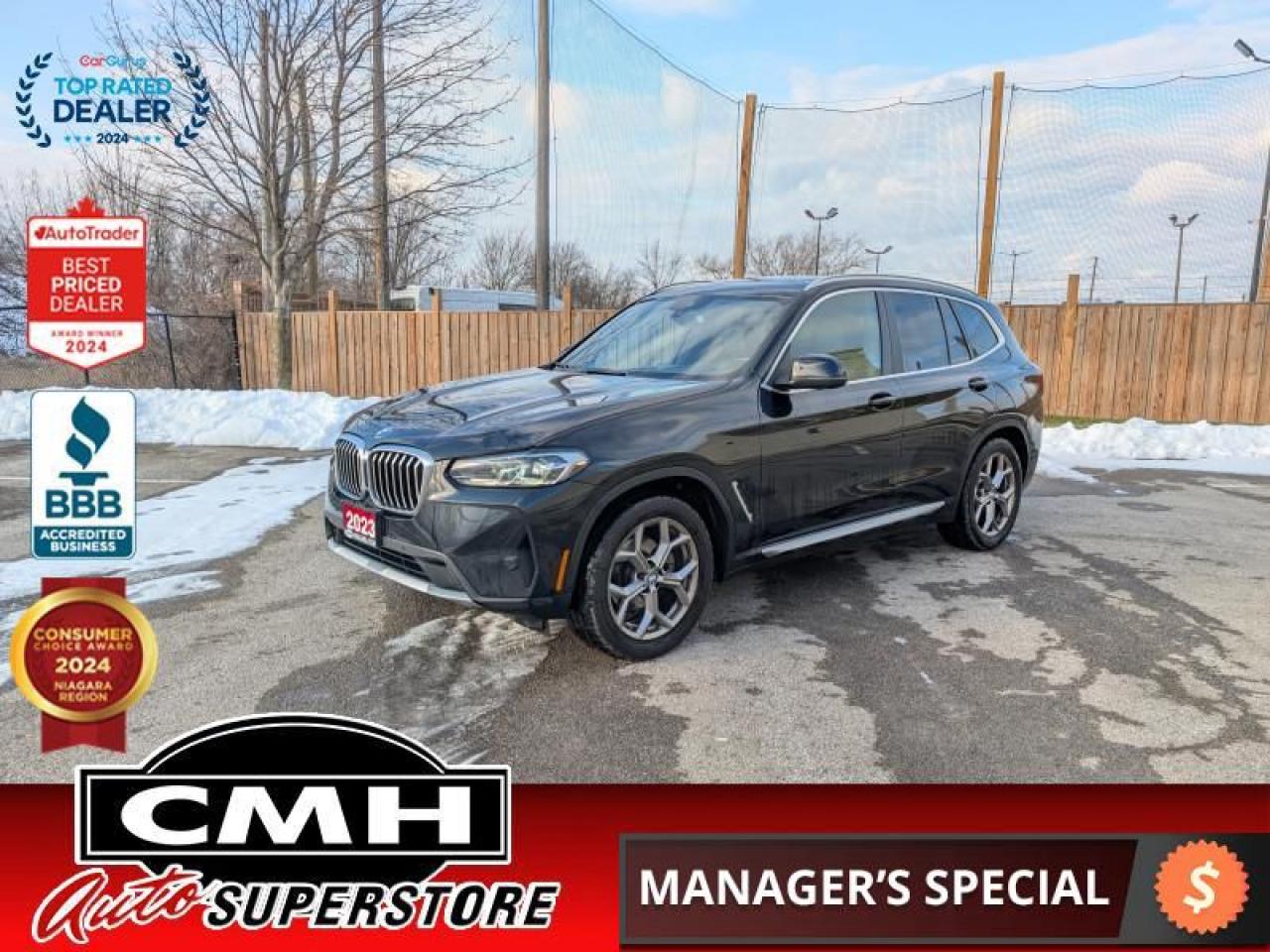 Built for the explorer in all of us, this BMW X3 has the space, comfort, and technology to help you expand your horizons. The exterior reflects BMW's balanced vision thanks to a dynamic silhouette, an aggressively styled front end with bold character lines that directly communicates the X3's outgoing personality. This X3 also offers a reassuring ride with a luxurious interior and is filled with advanced technology and safety features. Easily one of the best premium SUV's, this BMW X3 adapts to your lifestyle while providing an elegant look that will be the envy of all others.This SUV has 75,305 kms. It's black sapphire metallic in colour and is major accident free based on the CARFAX Report . It has an automatic transmission and is powered by a 248HP 2.0L 4 Cylinder Engine.
