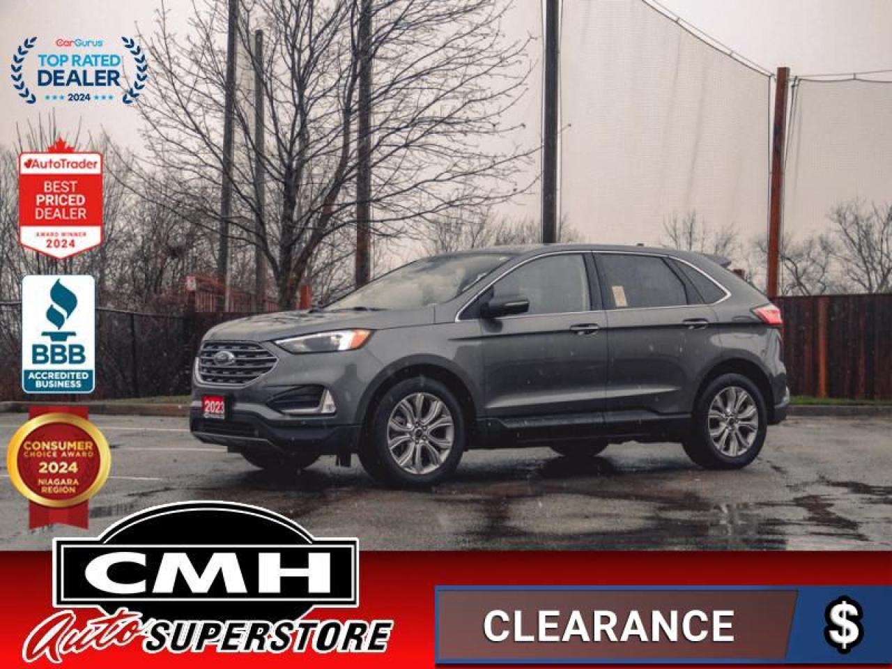 Our Edge's trim level is Titanium. For a healthy dose of luxury and refinement, step up to this Titanium trim, lavishly appointed with premium heated leather seats with power adjustment and lumbar support, perimeter approach lights, a sonorous 12-speaker Bang & Olufsen audio system, and a numeric keypad for extra security. This trim also features a power liftgate for rear cargo access, a key fob with remote engine start and rear parking sensors, a 12-inch capacitive infotainment screen bundled with wireless Apple CarPlay and Android Auto, SiriusXM satellite radio, and 4G mobile hotspot internet connectivity. You and yours are assured of optimum road safety, with blind spot detection, rear cross traffic alert, pre-collision assist with automatic emergency braking, lane keeping assist, lane departure warning, forward collision alert, driver monitoring alert, and a rearview camera with an inbuilt washer. Also standard include proximity keyless entry, dual-zone climate control, 60-40 split front folding rear seats, LED headlights with automatic high beams, and even more. This vehicle has been upgraded with the following features: Leather Seats, Premium Audio, Heated Seats, Power Liftgate, Apple Carplay, Android Auto, Remote Start.